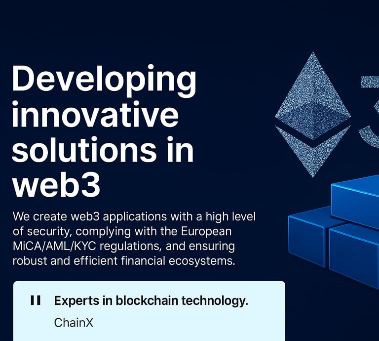 At ChainX, we are experts in open-source development, offering Web3, tokenization, and regulatory compliance solutions to ensure a secure and efficient financial ecosystem under European standards.